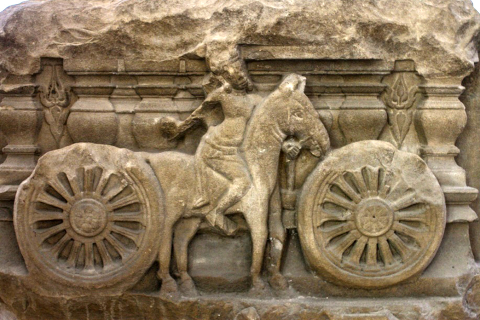 Trong một số tác phẩm, ngựa xuất hiện trong bối cảnh nghi lễ. Ở Trà Kiệu, ngựa đi cùng đoàn người của hoàng tử Rama trong trích đoạn Ramayana…