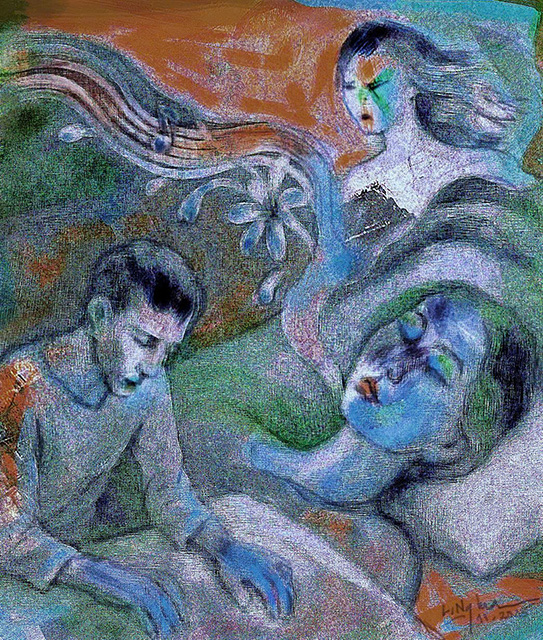 Bảy đêm bị lạc trong dòng thời gian, tôi chỉ mơ độc một giấc mơ về cô gái có khuôn mặt màu xanh pha sắc tím. Thứ mà tôi nghĩ đến mỗi lần tỉnh giấc là những âm hưởng kéo dài, du dương trong trẻo của một tiếng hát lạ lẫm. Lời và giai điệu của tiếng hát ấy không phải ở thế giới này. Tôi khẳng định, chưa bao giờ nghe thấy. Nhưng, tiếng hát chỉ là một phần cấu tứ trong giấc mơ bảy đêm. Tôi đã thử cố gắng để tái tạo trí nhớ về giấc mơ đó mỗi khi mở mắt nhìn mặt trời chói gắt ánh sáng hòng kiếm tìm nàng. Tôi đã lẩm nhẩm nhiều lần một số giai điệu nghe như là thứ âm thanh đầy sắc màu man mác. Tôi tự nhận, mình cũng biết chơi nhạc, biết tạo ra giai điệu. Ấy thế, mong muốn điều chỉnh, tái hiện lại thứ mình chỉ chạm đến trong giấc mơ thật không dễ. “Khi chúng ta lơ mơ về những điều hiện hữu giữa hư và thực, thì hẳn nhiên nó sẽ như một cơn đau len lẻn dưới thịt da phàm tục”.