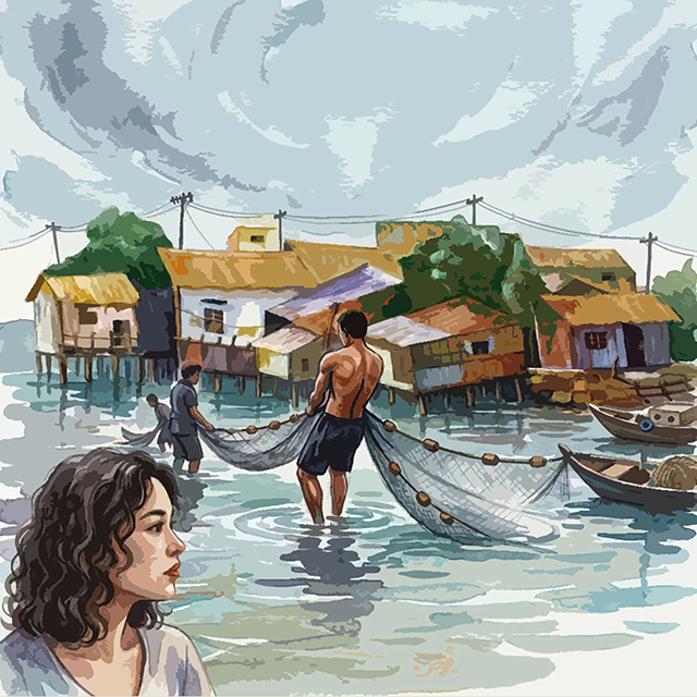 Nhưng giữa những tấm ảnh lung linh, giữa những câu chữ đang thành hình, có một khoảng lặng chen vào. Cô nhận ra dù đứng trước cảnh đẹp nào, cô cũng vô thức tìm lại một dáng người giữa nền xanh. Một tấm lưng trần, một nhịp kéo lưới, một gương mặt rất nam tính, một ánh mắt hướng ra khơi.