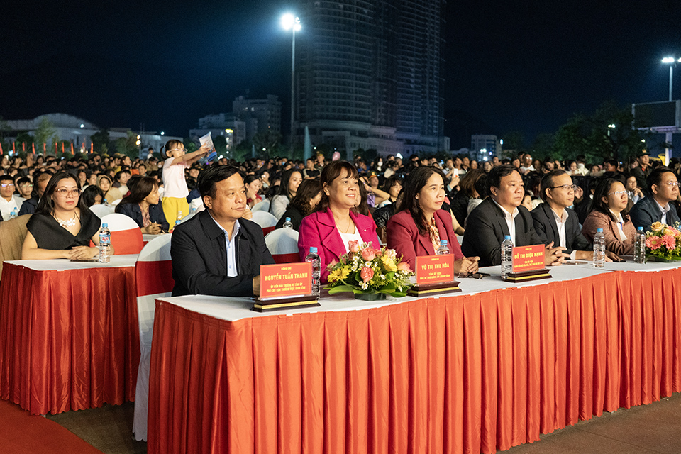 Dự tại điểm cầu Quảng trường Nguyễn Tất Thành có các đồng chí: Nguyễn Tuấn Thanh, Ủy viên Ban Thường vụ Tỉnh ủy, Phó Chủ tịch Thường trực UBND tỉnh; Lý Tiết Hạnh, Tỉnh ủy viên, Phó Trưởng Đoàn đại biểu Quốc hội tỉnh; Võ Thị Thu Hòa, Tỉnh ủy viên, Phó Bí thư Đảng ủy UBND tỉnh; Đỗ Thị Diệu Hạnh, Tỉnh ủy viên, Giám đốc Sở Văn hóa, Thể thao và Du lịch; Nguyễn Thị Bích Ly, Phó Trưởng ban Ban Tuyên giáo và Dân vận Tỉnh ủy; cùng đại biểu lãnh đạo các sở, ban ngành, hội đoàn thể, các xã, phường trong tỉnh, đại biểu lãnh đạo các doanh nghiệp, nhân dân và du khách.