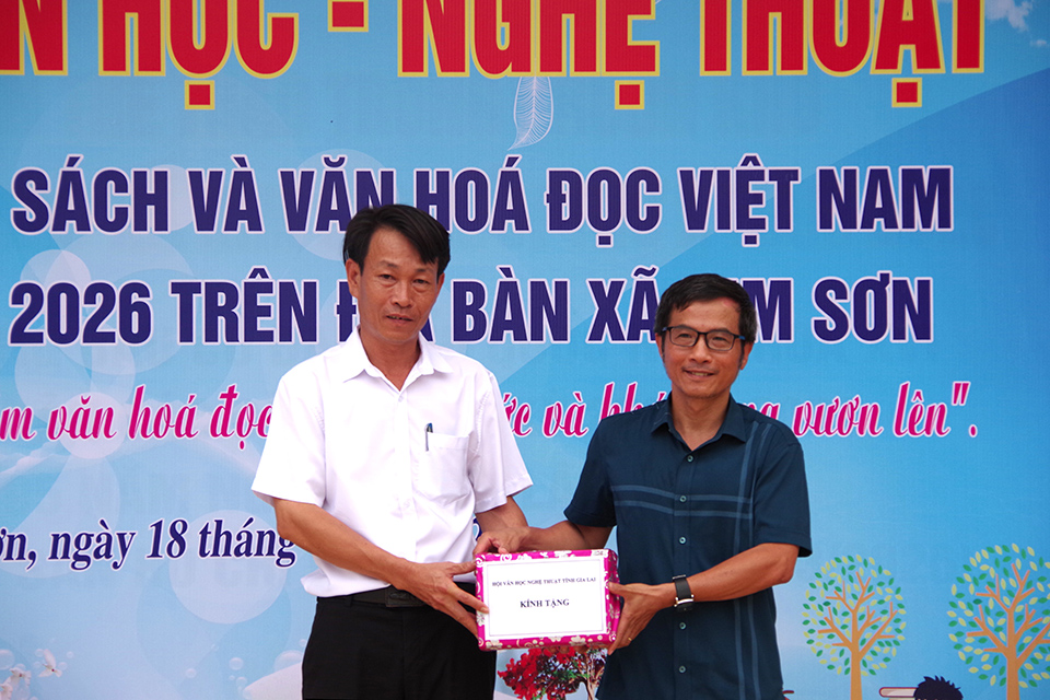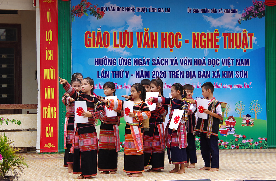 (VNGL – Đời sống văn nghệ). Chiều 18.4, tại Trường THCS Ân Nghĩa, Hội VHNT tỉnh Gia Lai phối hợp với UBND xã Kim Sơn tổ chức chương trình Giao lưu văn học nghệ thuật hưởng ứng Ngày Sách và Văn hóa đọc Việt Nam lần thứ V – 2026.