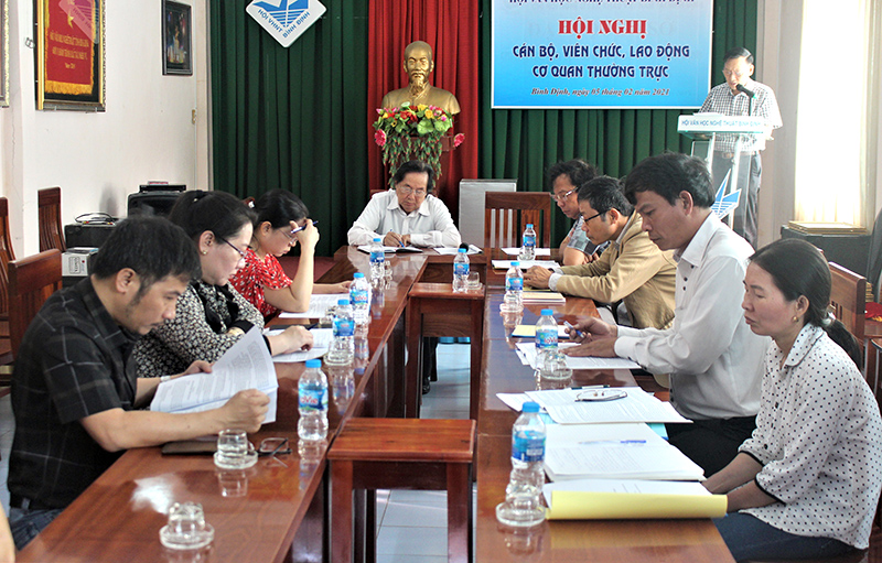 (VNBĐ – Đời sống văn nghệ). Sáng ngày 05.02, Cơ quan thường trực Hội VHNT Bình Định đã tổ chức Hội nghị CBVCLĐ năm 2021 nhằm đánh giá kết quả thực hiện nghị quyết Hội nghị CBVCLĐ năm 2020 và triển khai nhiệm vụ công tác năm 2021.