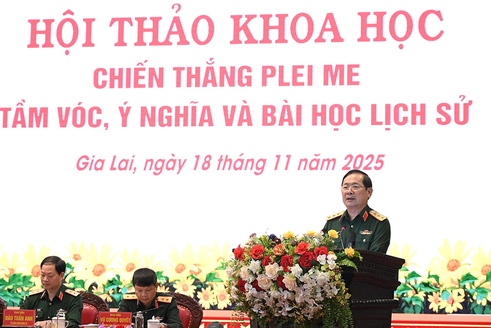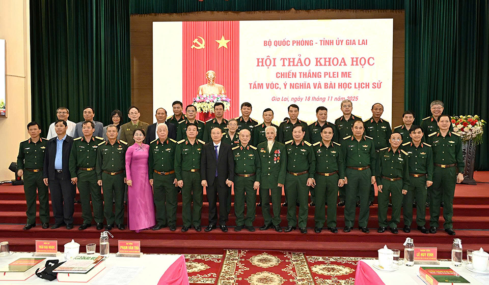 (VNGL – Thời sự). Sáng 18.11, tại phường Pleiku (Gia Lai), Bộ Quốc phòng phối hợp với Tỉnh ủy Gia Lai tổ chức Hội thảo khoa học với chủ đề “Chiến thắng Plei Me – Tầm vóc, ý nghĩa và bài học lịch sử”. Đây là hoạt động quan trọng hướng tới kỷ niệm 60 năm Chiến thắng Plei Me (1965 – 2025), đồng thời thiết thực chào mừng 81 năm Ngày thành lập Quân đội Nhân dân Việt Nam và 36 năm Ngày hội Quốc phòng toàn dân.