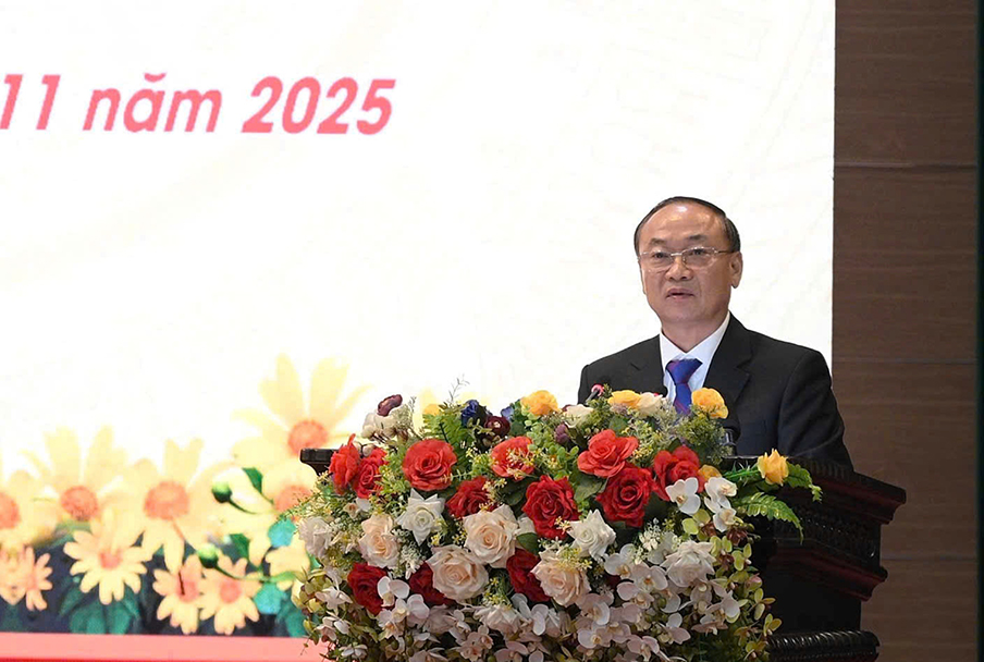 Đồng chí Thái Đại Ngọc – Ủy viên Ban Chấp hành Trung ương Đảng, Bí thư Tỉnh ủy Gia Lai, Trưởng ban Chỉ đạo Hội thảo phát biểu chào mừng. Ảnh: P.N