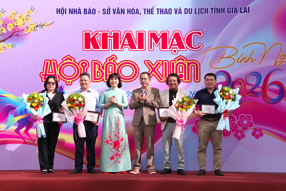 (VNGL – Thời sự). Sáng 9.2, tại Trung tâm Hội nghị tỉnh, Hội Nhà báo tỉnh Gia Lai phối hợp với Sở Văn hóa, Thể thao và Du lịch, Thư viện tỉnh, Trung tâm Văn hóa tỉnh tổ chức khai mạc Hội Báo Xuân Bính Ngọ 2026. Dự buổi khai mạc có đồng chí Võ Thị Thu Hòa – Tỉnh ủy viên – Phó Bí thư chuyên trách Đảng ủy UBND tỉnh; Hồ Xuân Ánh – Tỉnh ủy viên – Tổng biên tập Báo và Phát thanh – Truyền hình Gia Lai; Nguyễn Thị Bích Ly – Phó Trưởng Ban Tuyên giáo và Dân vận Tỉnh ủy; cùng đại diện lãnh đạo Sở VHTT&DL, Hội VHNT, Thư viện tỉnh; những người làm báo, bạn đọc trong tỉnh.