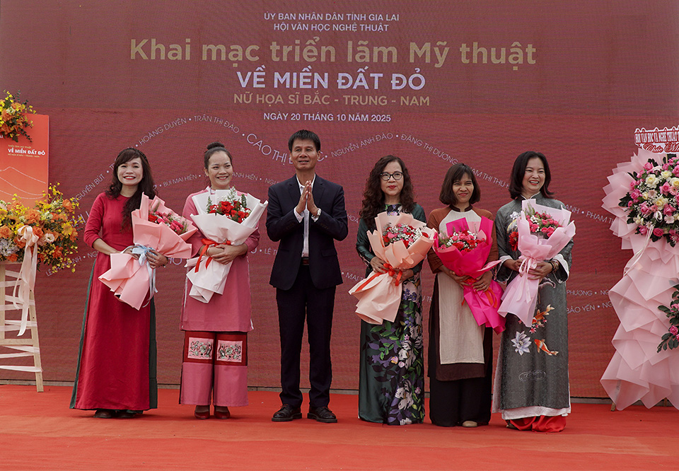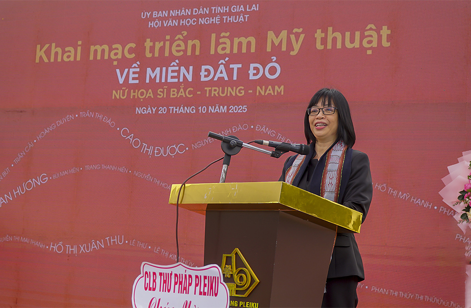Triển lãm Mỹ thuật “Về miền đất đỏ” diễn ra từ ngày 20.10 đến 10.11.2025, quy tụ 30 nữ họa sĩ đến từ ba miền Bắc – Trung – Nam, giới thiệu 47 tác phẩm (trong đó, Gia Lai có 15 tác phẩm của 11 tác giả tham gia). Các tác phẩm triển lãm với nhiều chất liệu: sơn dầu, sơn mài, lụa, acrylic, khắc gỗ, giấy dó, trúc chỉ…, đa dạng về chủ đề, mỗi tác phẩm là một mảnh cảm xúc, phản chiếu hành trình sáng tạo và góc nhìn riêng của người phụ nữ trong đời sống đương đại.