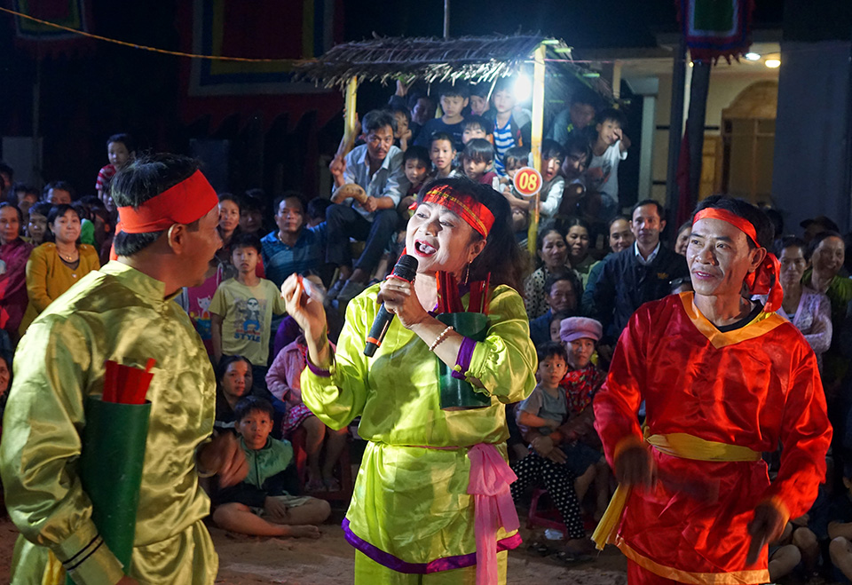 Diễn xướng Bài chòi tại Đền thờ Đào Duy Từ. Ảnh: Văn Cảnh