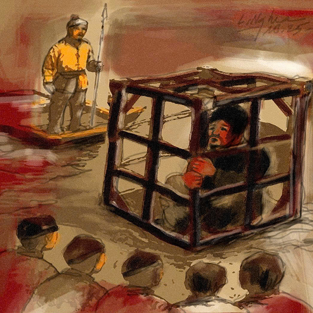 Từ sáng sớm, năm tử tù bị nhốt vào cũi tre, chằng xích bốn bên. Mỗi chiếc cũi do một xe ngựa kéo đi, chậm rãi lê một vòng quanh kinh thành thị chúng trước khi bị hành quyết.