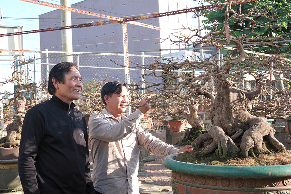 Bởi vậy, trong vườn ông giờ có những gốc mai cổ thụ năm mươi, bảy mươi, thậm chí trên chín mươi năm tuổi. Có cây được đặt tên nghe như một tích xưa: “Ngũ long phục hổ”. Năm thân mai vươn lên như năm con rồng, tượng trưng cho ngũ phúc. Bộ đế bên dưới xù xì, vững chãi, gợi hình một con hổ đang nằm phục, “cài” đủ lực. Ông Tuấn chia sẻ, người trong giới cây cảnh ước giá của nó không dưới một tỷ đồng, nhưng với ông, giá lớn nhất là giữ được nó sống khỏe qua từng mùa gió bão, để mỗi độ xuân về lại khai hoa từ những chắt chiu chăm dưỡng.