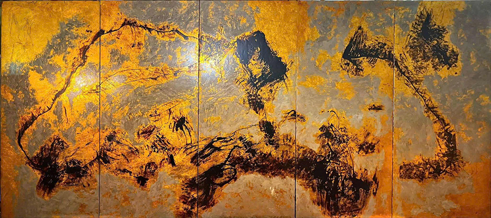 Sáu năm sau, với triển lãm thứ hai – Âm sắc vàng son – Linh cho thấy một bước trưởng thành rõ rệt. Sáu năm không dài, nhưng đủ để một nghệ sĩ lớn lên nếu họ thật sự sống cùng chất liệu. Linh không còn tìm cách “điều khiển” sơn mài theo ý mình; trái lại, cô để sơn mài dẫn dắt. Sự chuyển dịch này không ồn ào mà chậm rãi, chắc chắn – như ánh vàng chỉ lóe lên sau những lượt mài đủ sâu và đủ tĩnh.