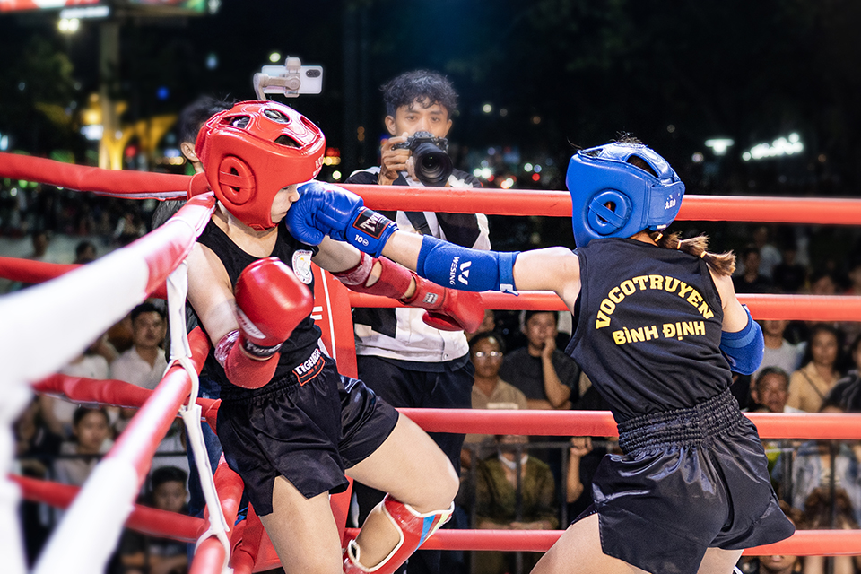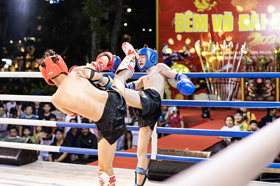 Lối đánh quyết liệt, thông minh của các võ sĩ trong đêm khai mạc “Đêm võ đài Bình Định” mùng 7 Tết tại Quảng trường Nguyễn Tất Thành. Ảnh: T.X