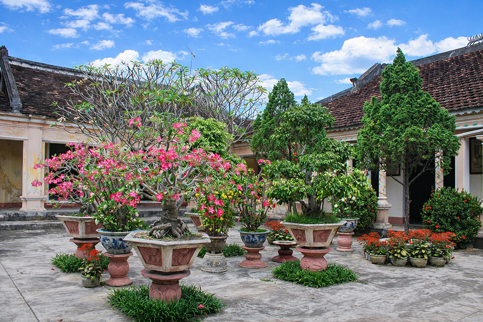 Năm 1990, Tổ Đình Thập Tháp được xếp hạng di tích quốc gia. Từ đó đến nay, chùa… vẫn cổ, vẫn bảo lưu được nét xưa kính tôn nghiêm dù nhiều lần trùng tu, sửa chữa. Sự giữ gìn đó, trong bối cảnh hiện đại, là một giá trị vô cùng đáng kể. Ngoài kiến trúc, các di vật thì cổ thụ trong khuôn viên chùa cũng góp phần tạo nên diện mạo thâm trầm sóng bước với thời gian. Tôi ấn tượng với “lão Bồ Đề” ở ngoài cổng vào Đông Đường và sáu cây duối xếp thành hai hàng tán lọng dẫn lối đến Tây Đường, những vòm xanh thanh mát như đưa ta vào cõi khác, cõi “thiền định nhiệm màu”. Xung quanh khuôn viên là cơ man liễu, nguyệt quế, đại sứ sừng sững vươn cành giữa trời xanh. Tôi vẫn nghĩ vãng cảnh chùa là một thú bình yên tao nhã, nhưng thăm Thập Tháp vào ngày đầu tháng Chạp gió heo may lại giống như một cơ duyên. Điểm giữa nét trầm nghiêm cổ thụ là tưng bừng sắc hoa. Hoa giấy mong manh mà rực rỡ, hoa thược dược lộng lẫy sắc thắm, mai vàng, vạn thọ rộn ràng báo xuân sang… Bất cứ nơi đâu có thể xếp được chậu cảnh, trong khuôn viên Chánh điện, trước Phương trượng, cạnh những bức bình phong cổ, hay mé Tây đường, Đông đường,.. khắp nơi sắc hoa bung nở, chao lay lặng lẽ trong gió, trong tiếng chuông chùa trầm ấm ngân vang, trong khói nhang huyền hoặc, nhắc ta giữ lòng thanh tịnh mà vẫn thơi thới mến yêu cuộc sống này. Chùa xưa liệm tang hải bể dâu ở đâu? Trong tiếng kinh cầu sớm tối hay trong nhịp chung ngân đều đặn mỗi ngày, mà ở cõi thế này, tại đây, phiền não đã được gột rửa sạch trong, an tịnh đến vô cùng?