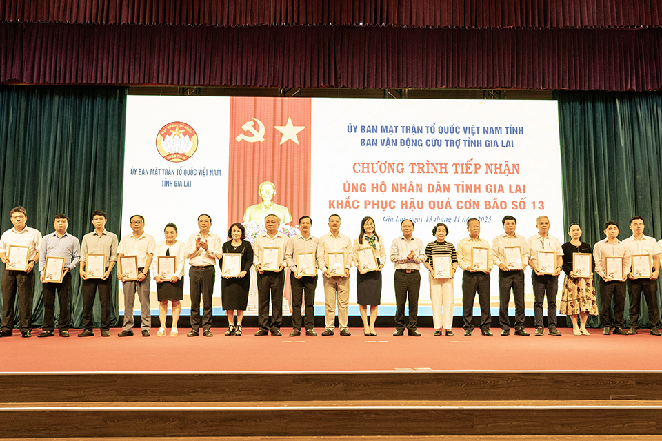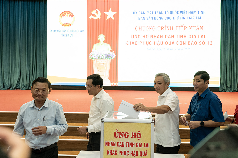 (VNGL – Thời sự). Chiều 13.11.2025, tại Trung tâm Hội nghị tỉnh, Ban Thường trực UBMTTQ Việt Nam tỉnh, Ban vận động cứu trợ tỉnh tổ chức chương trình tiếp nhận hỗ trợ từ các cơ quan, tổ chức, doanh nghiệp và cá nhân trong và ngoài tỉnh ủng hộ nguồn lực giúp Nhân dân tỉnh Gia Lai khắc phục hậu quả do cơn bão số 13 (Kalmaegi) gây ra.