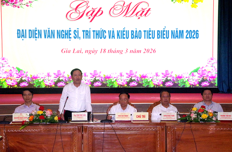 Phát biểu tại buổi gặp mặt, Bí thư Tỉnh ủy Thái Đại Ngọc ghi nhận và biểu dương những đóng góp quan trọng của đội ngũ văn nghệ sĩ, trí thức và kiều bào đối với sự phát triển của tỉnh trong thời gian qua. Đồng thời khẳng định, trong bối cảnh hội nhập sâu rộng, Gia Lai cần phát huy hơn nữa nguồn lực trí tuệ, sáng tạo; coi đây là động lực quan trọng để phát triển nhanh và bền vững. Lãnh đạo tỉnh cũng đề nghị các cấp, ngành tiếp tục quan tâm, tạo điều kiện thuận lợi để đội ngũ văn nghệ sĩ, trí thức phát huy năng lực; tăng cường cơ chế đối thoại, lắng nghe, tiếp thu ý kiến đóng góp. Đối với kiều bào, cần có những chính sách phù hợp để kết nối, khuyến khích đóng góp trí tuệ, nguồn lực cho quê hương.