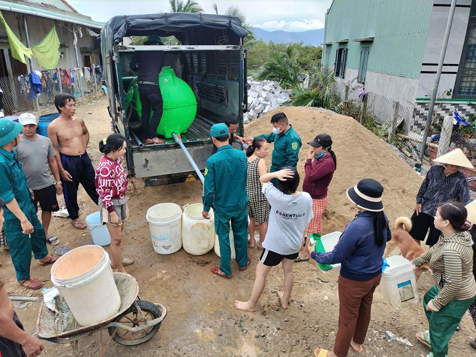 Sau bão, công tác khắc phục bão được khẩn trương thực hiện. Ở xã An Lương (Gia Lai), người dân vui mừng khi dân quân, lực lượng công an, chính quyền mang hàng chục mét khối nước sạch đến tiếp tế cho người dân. Anh Trần Ngọc Linh, dân quân tự vệ xã An Lương chia sẻ: “Từ trước bão, anh em đã túc trực 24/24 di dời dân về vùng an toàn. Sau bão, tiếp tục cùng bà con khắc phục hậu quả, dọp dẹp cây cối, khơi thông đường xá, đặc biệt mang nước sạch đến tiếp tế cho người dân sinh hoạt. Ai cũng mệt nhưng ai cũng thương dân mình nên cùng nhau cố gắng”.